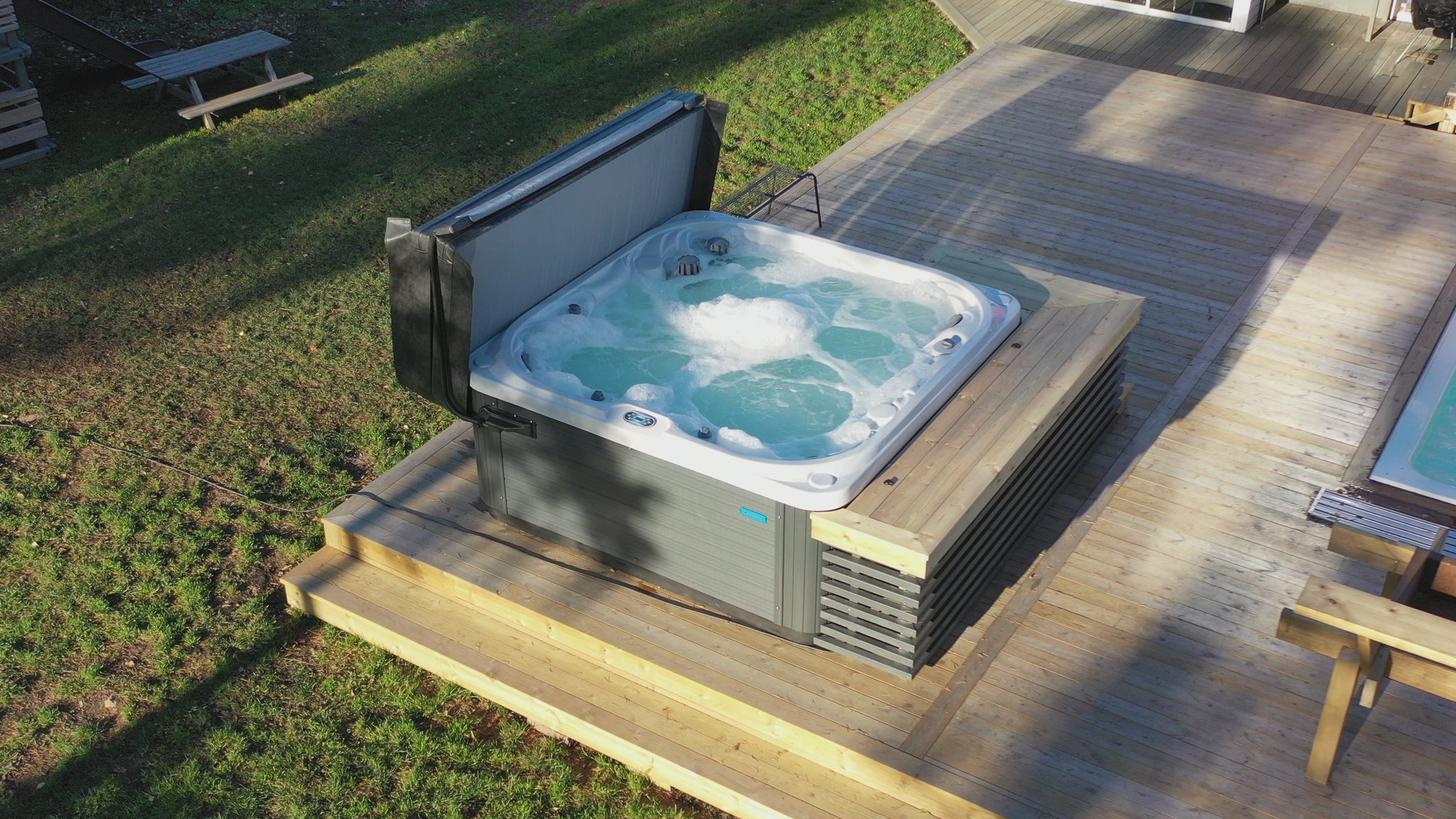 Upplev avkoppling och gemenskap på en helt ny nivå med Venus – ett stilrent spabad med plats för upp till sex personer. Med generösa sitt- och liggplatser skapas en perfekt plats för både lugna stunder och sociala bad med familj och vänner. Venus är designad för att passa det nordiska klimatet och kombinerar komfort, elegans och effektivitet i ett och samma bad. Det användarvänliga styrsystemet gör det enkelt att justera värme och funktioner för att anpassa badet efter dina behov, medan den genomtänkta belysningen skapar en rofylld stämning när mörkret faller. Spabadet är en idealisk plats att landa i efter en lång dag – oavsett årstid. Med Venus får du inte bara ett spabad, utan en plats för återhämtning, gemenskap och vardagslyx – direkt hemma i din egen trädgård.